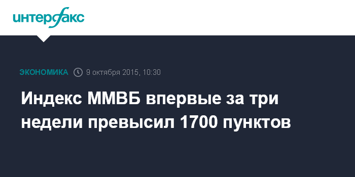 Москва. 9 октября. INTERFAX.RU - Индекс ММВБ, один из основных российских фондовых индикаторов, утром в пятницу превысил рубеж 1700 пунктов впервые за три недели на фоне раллирующей нефти и подъема мировых фондовых площадок.