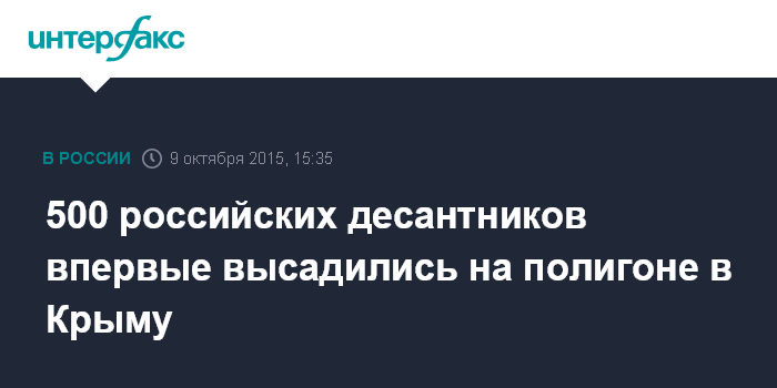 Москва. 9 октября. INTERFAX.RU - Около 500 военнослужащих Воздушно-десантных войск РФ впервые десантировались в Крыму, сообщил "Интерфаксу" в пятницу официальный представитель ВДВ подполковник Евгений Мешков.