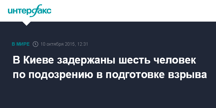 Москва. 10 октября. INTERFAX.RU - Глава Службы безопасности Украины Василий Грицак сообщил, что в Киеве задержаны шесть человек, которые собирались устроить взрыв в военкомате ко Дню защитника отечества Украины, 14 октября.