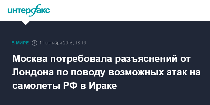 Москва потребовала разъяснений от Лондона по поводу возможных атак на самолеты РФ в Ираке