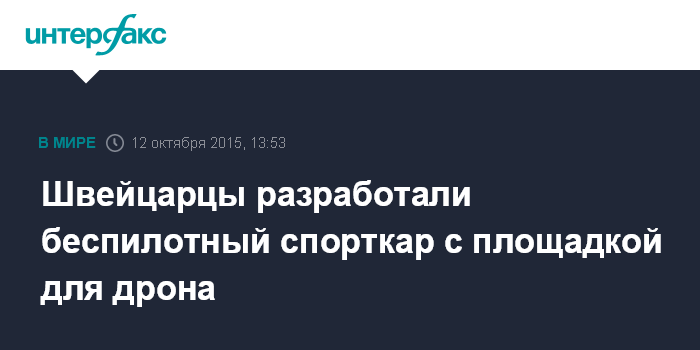 Москва. 12 октября. INTERFAX.RU - Швейцарская компания Rinspeed разработала концепт гибридного спорткара с функций беспилотного вождения и взлетно-посадочной площадкой для квадрокоптера, сообщает сайт N+1. Автомобиль будет представлен публике на выставке CES 2016 в Лас-Вегасе в январе 2016 года.