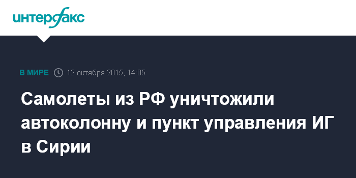 Самолеты из РФ уничтожили автоколонну и пункт управления ИГ в Сирии