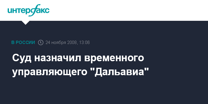 Москва. 24 ноября. INTERFAX.RU - Арбитражный суд Хабаровского края на заседании в понедельник назначил временным управляющим ОАО "Дальавиа" Вадима Веселкова, сообщил корреспондент "Интерфакса", присутствовавший на заседании.
