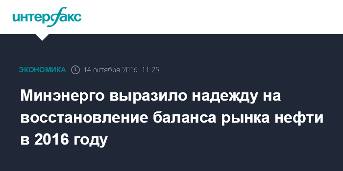Москва. 14 октября. INTERFAX.RU – Минэнерго РФ надеется на восстановление баланса спроса и предложения нефти в мире во второй половине 2016 года, заявил журналистам глава министерства Александр Новак.