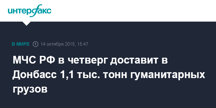 МЧС РФ в четверг доставит в Донбасс 1,1 тыс. тонн гуманитарных грузов