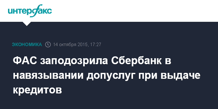 ФАС заподозрила Сбербанк в навязывании допуслуг при выдаче кредитов