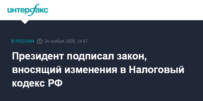 Президент подписал закон, вносящий изменения в Налоговый кодекс РФ