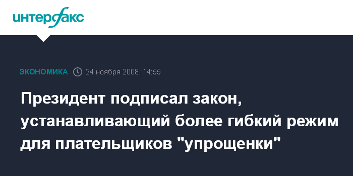 Президент подписал закон, устанавливающий более гибкий режим для плательщиков "упрощенки"