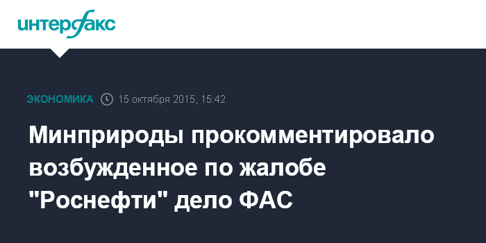 Минприроды прокомментировало возбужденное по жалобе "Роснефти" дело ФАС