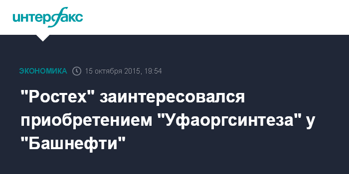 По словам одного из источников, "Ростех" хотел бы приобрести "Уфанефтеоргсинтез" полностью, но пока это предложение находится в начальной стадии обсуждения. Покупать другие предприятия "Башнефти" или химические активы других компаний "Ростех", по словам источника, пока не собирается. "Речь идет только об "Уфаоргсинтезе", - подчеркнул он.