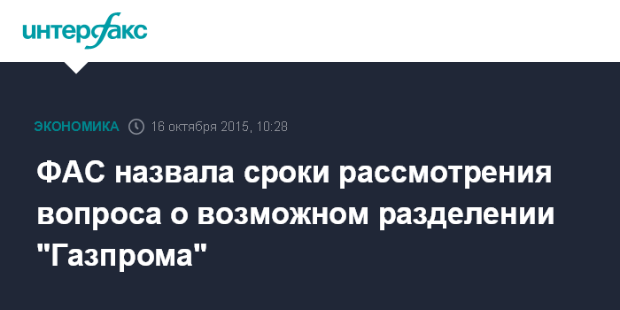 ФАС назвала сроки рассмотрения вопроса о возможном разделении "Газпрома"
