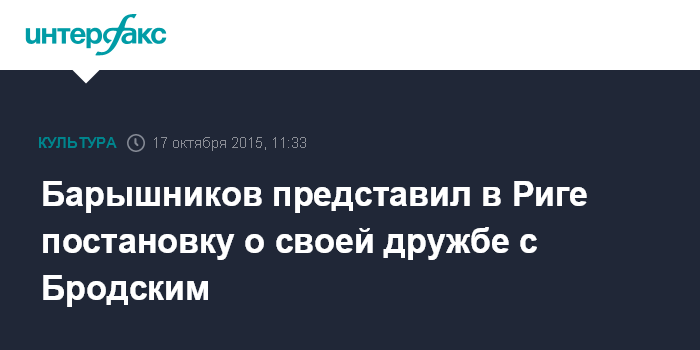 Москва. 17 октября. INTERFAX.RU - В Новом Рижском театре состоялась премьера постановки Алвиса Херманиса (Alvis Hermanis) "Бродский/Барышников".