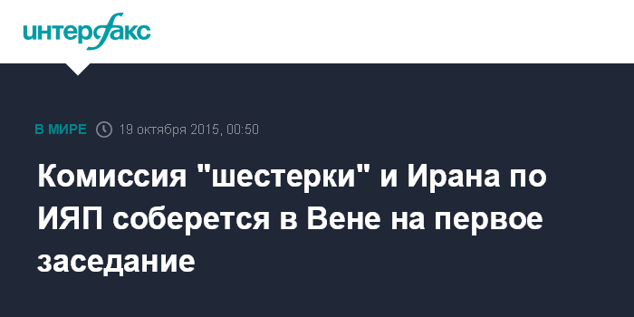 Москва. 19 октября. INTERFAX.RU - Первое заседание совместной комиссии "шестерки" международных посредников (пять постоянных членов СБ ООН и Германия) и Ирана по отслеживанию реализации договоренностей по иранской ядерной программе (ИЯП), состоится в понедельник в Вене.