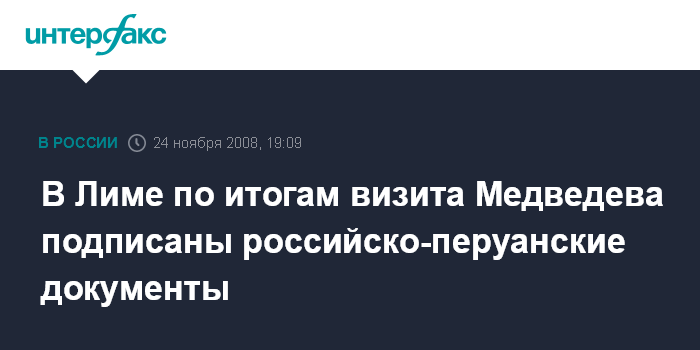 В Лиме по итогам визита Медведева подписаны российско-перуанские документы