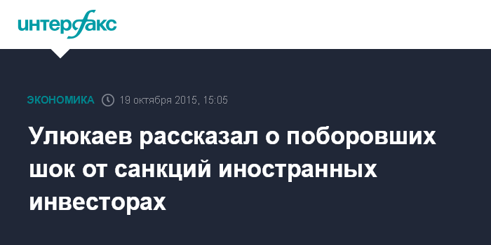 Москва. 19 октября. INTERFAX.RU - У инвесторов прошел первый шок от введения санкций против России, считает глава Минэкономразвития Алексей Улюкаев.