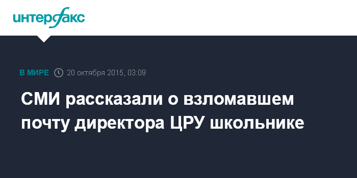 Москва. 20 октября. INTERFAX.RU - Спецслужбы США проверяют сообщения о том, что личную электронную почту директора ЦРУ Джона Бреннана взломал старшеклассник.