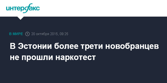 Москва. 20 октября. INTERFAX.RU - В Эстонии 76 новобранцев из 200 произвольно отобранных в ходе осеннего призыва молодых людей в батальоне на Юго-Востоке страны не прошли проверку на употребление наркотиков.