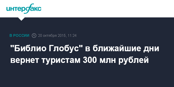 "Библио Глобус" в ближайшие дни вернет туристам 300 млн рублей