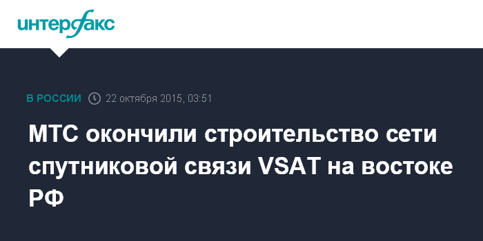 Москва. 22 октября. INTERFAX.RU - ПАО "Мобильные Телесистемы" завершило реализацию проекта по строительству сети спутниковой связи VSAT на востоке России, инвестиции составили более 250 млн рублей.