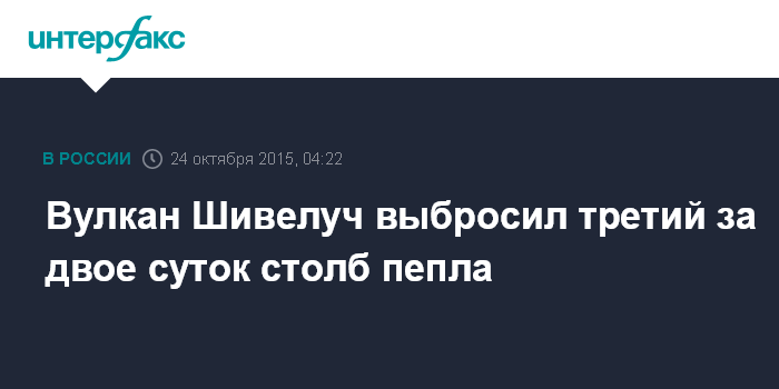 Москва. 24 октября. INTERFAX.RU - Вулкан Шивелуч, извергающийся на Камчатке, выбросил столб пепла на высоту 6 км над уровнем моря, сообщили агентству "Интерфакс" в субботу в Камчатском филиале Геофизической службы РАН.
