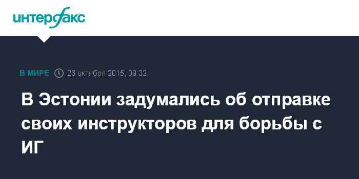 Москва. 26 октября. INTERFAX.RU - В министерстве обороны Эстонии разрабатываются планы возможного участия солдат сил обороны в борьбе с террористической организацией "Исламское государство" (запрещена в России).