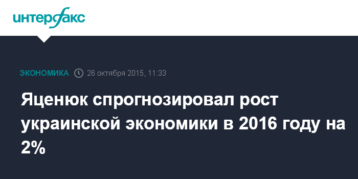 Москва. 26 октября. INTERFAX.RU - Рост украинской экономики в 2016 году ожидается на уровне 2%, заявил премьер-министр Украины Арсений Яценюк.