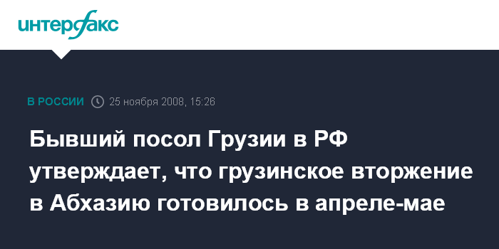 Бывший посол Грузии в РФ утверждает, что грузинское вторжение в Абхазию готовилось в апреле-мае