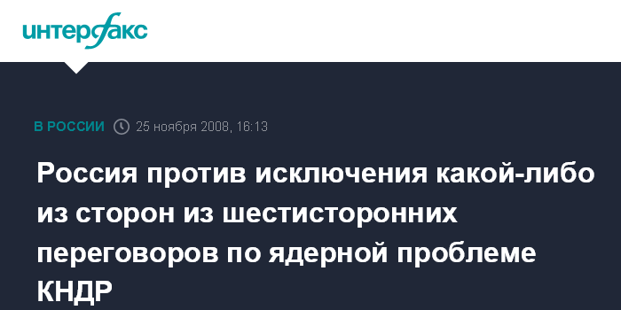 Россия против исключения какой-либо из сторон из шестисторонних переговоров по ядерной проблеме КНДР