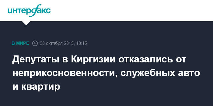 Депутаты в Киргизии отказались от неприкосновенности, служебных авто и квартир