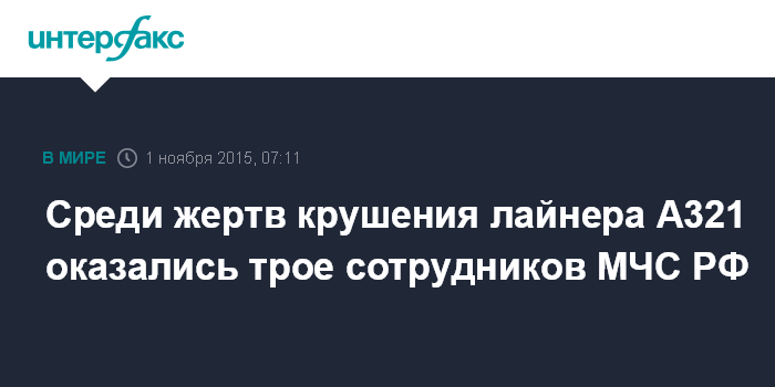 Среди жертв крушения лайнера А321 оказались трое сотрудников МЧС РФ