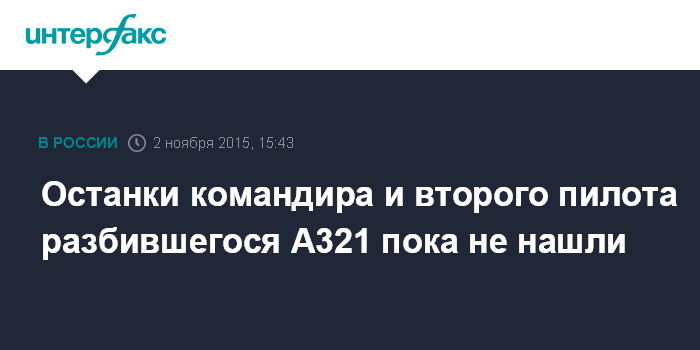 Москва. 2 ноября. INTERFAX.RU - Тела членов летного экипажа разбившегося на Синае А321 пока не обнаружены. Скорее всего, они находятся под обломками кабины воздушного судна, сообщил "Интерфаксу" информированный источник в Каире.