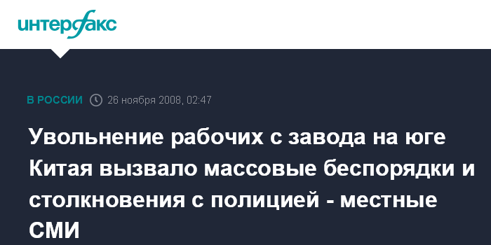 Увольнение рабочих с завода на юге Китая вызвало массовые беспорядки и столкновения с полицией - местные СМИ
