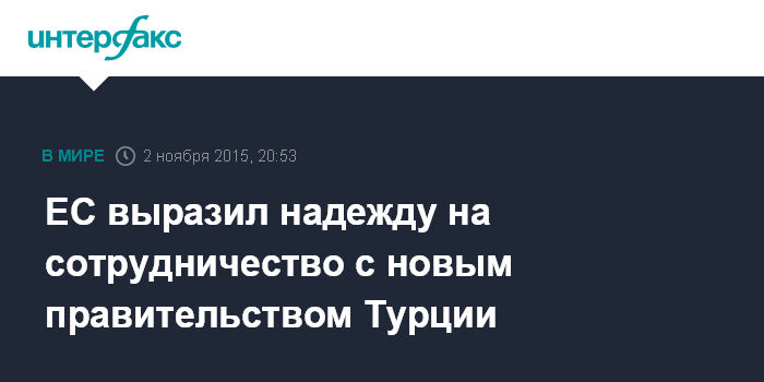 Москва. 2 ноября. INTERFAX.RU - ЕС намерен развивать сотрудничество с новыми властями Турции, заявила глава европейской дипломатии Федерика Могерини.