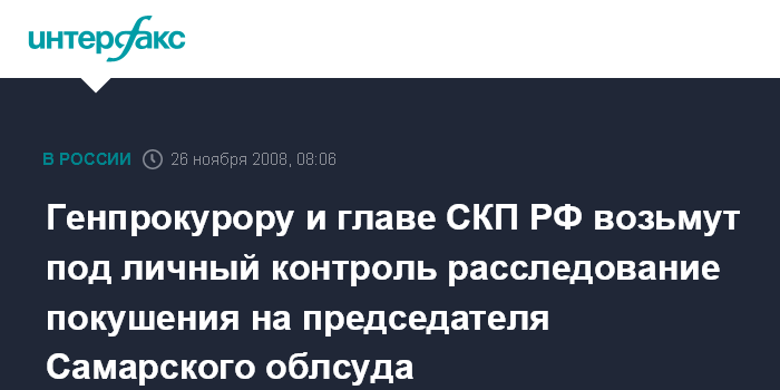 Генпрокурору и главе СКП РФ возьмут под личный контроль расследование покушения на председателя Самарского облсуда
