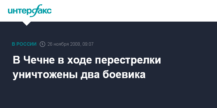 Москва. 26 ноября. INTERFAX.RU - Двое участников незаконных вооруженных формирований были уничтожены сотрудниками МВД в Грозном, сообщил "Интерфаксу" в среду утром источник в правоохранительных органах республики.