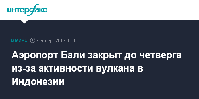 Аэропорт Бали закрыт до четверга из-за активности вулкана в Индонезии