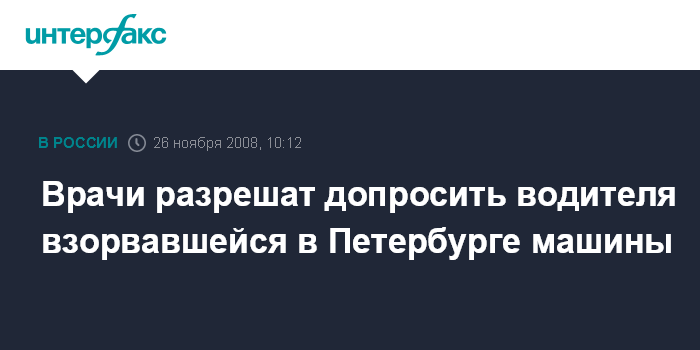 Москва. 26 ноября. INTERFAX.RU - Врачи военно-медицинской академии Петербурга обещают в течение среды допустить следователей до допроса находящегося в клинике академии водителя взорвавшегося накануне утром автомобиля.