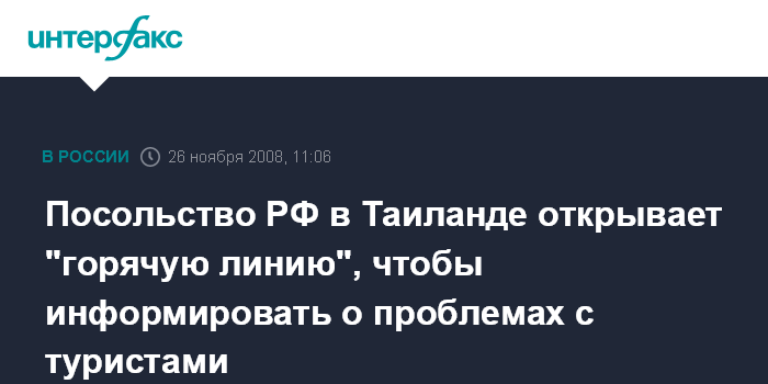 Москва. 26 ноября. INTERFAX.RU - В посольстве России в Бангкоке открыта "горячая телефонная линия" для оказания содействия российским туристам в связи с блокированием антиправительственными демонстрантами международного аэропорта в столице Таиланда.