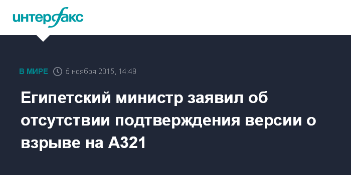 Египетский министр заявил об отсутствии подтверждения версии о взрыве на А321