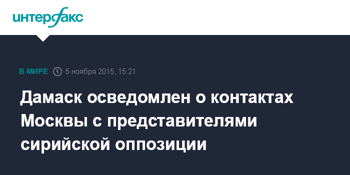 Дамаск осведомлен о контактах Москвы с представителями сирийской оппозиции