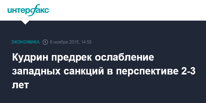 Москва. 6 ноября. INTERFAX.RU – Экс-министр финансов России, глава Комитета гражданских инициатив Алексей Кудрин полагает, что на ослабление западных санкций можно рассчитывать в перспективе двух-трех лет.