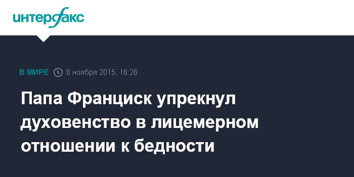 Москва. 6 ноября. INTERFAX.RU - Папа римский Франциск предостерег католическое духовенство от лицемерия в вопросе бедности, пишет британская газета The Guardian.