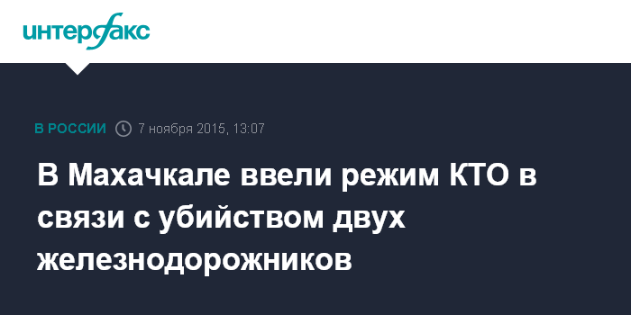 Москва. 7 ноября. INTERFAX.RU - Правовой режим контртеррористической операции (КТО) введен в субботу в Ленинском районе Махачкалы после совершенного здесь убийства двух путевых обходчиков железной дороги, сообщили "Интерфаксу" в оперативном штабе в Дагестане.
