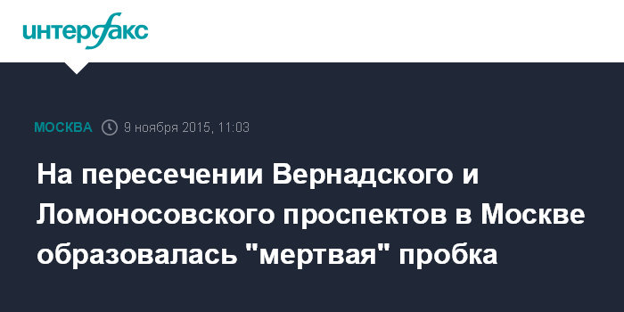 На пересечении Вернадского и Ломоносовского проспектов в Москве образовалась "мертвая" пробка