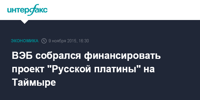 ВЭБ собрался финансировать проект "Русской платины" на Таймыре