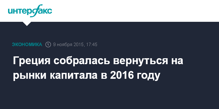 Москва. 9 ноября. INTERFAX.RU – Греция готовится к возврату на международные рынки капитала в следующем году на фоне стабилизации, последовавшей за заключением соглашения о третьем пакете финансовой помощи стране со стороны европейских кредиторов.