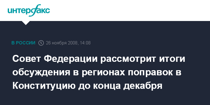 Совет Федерации рассмотрит итоги обсуждения в регионах поправок в Конституцию до конца декабря