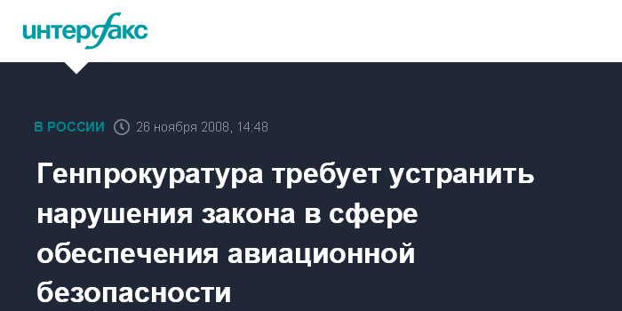Москва. 26 ноября. INTERFAX.RU - Генеральная прокуратура России внесла руководителям Росавиации и Ространснадзора представления с требованием устранить нарушения закона и привлечь виновных должностных лиц к ответственности.
