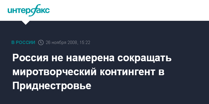 Москва. 26 ноября. INTERFAX.RU - Российский контингент миротворческих сил в Приднестровье сокращать не планируется, заявил "Интерфаксу" командующий российскими миротворцами полковник Анатолий Зверев.