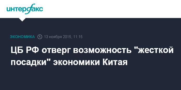 ЦБ РФ отверг возможность "жесткой посадки" экономики Китая